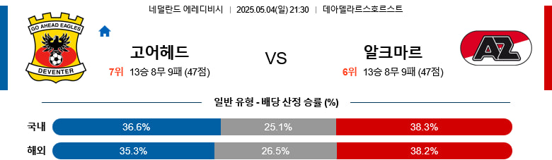 05/04(일) 고어헤드이글스vsAZ알크마르 에레디비시 분석