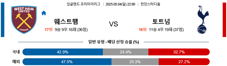 05/04(일) 웨스트햄vs토트넘 EPL 분석