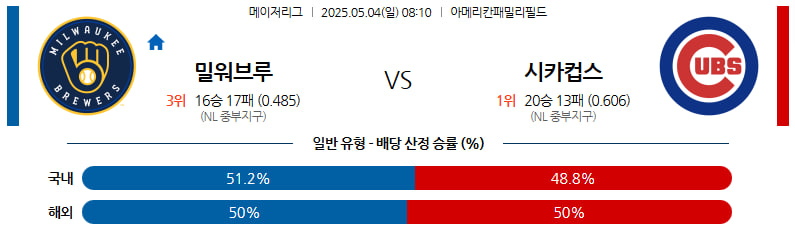 컵스의 기세가 무섭다. 스킨스를 공략한게 운이 아니었음을 증명하는 중. 퀸타나의 투구는 분명 뛰어나고 주목할 가치가 있지만 최근의 컵스는 리그에서 좌완 상대로 제일 강한 팀이고 지금의 타이욘은 믿을수 있는 선발 투수다. 게다가 불펜에서 컵스가 우위에 있다. 힘에서 앞선 시카고 컵스가 승리를 가져갈 것이다.