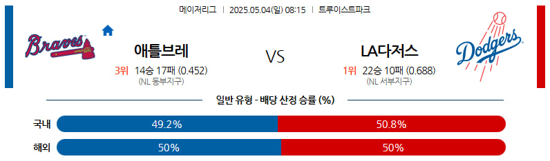 05월 04일 MLB 애틀랜타 LA다저스 분석