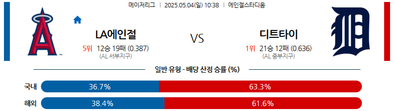05월 04일 MLB LA에인절스 디트로이트 분석