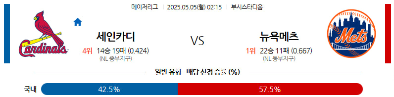 05월 05일 MLB 세인트루이스 뉴욕메츠 분석