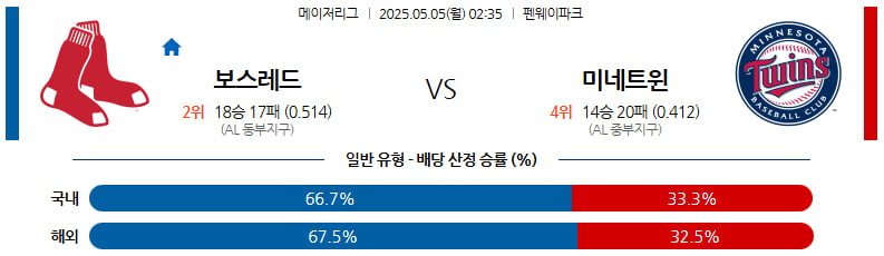 05월 05일 MLB 보스턴 미네소타 분석