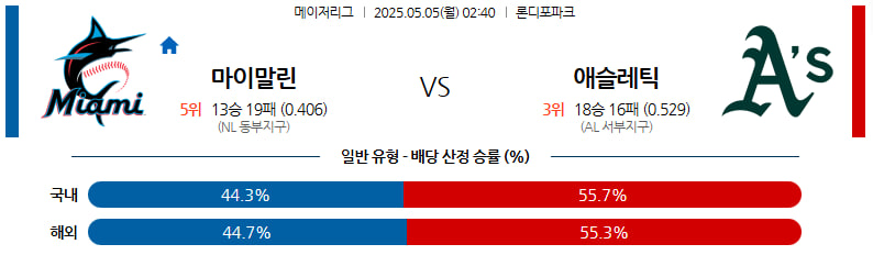 05월 05일 MLB 마이애미 애슬레틱스 분석