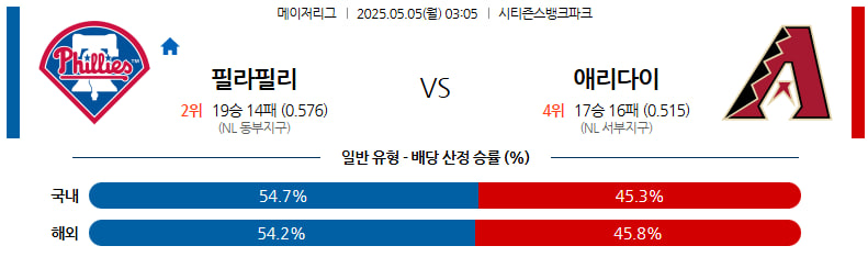 05월 05일 MLB 필라델피아 애리조나 분석