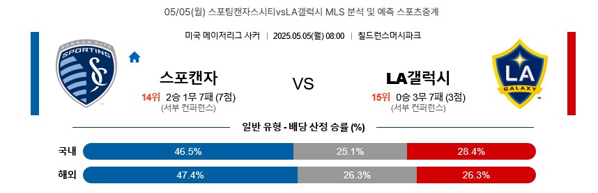 05/05(월) 스포팅캔자스시티vsLA갤럭시 MLS 분석