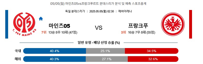 05/05(월) 마인츠05vs프랑크푸르트 분데스리가 분석