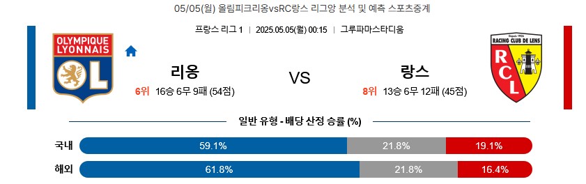 05/05(월) 올림피크리옹vsRC랑스 리그앙 분석