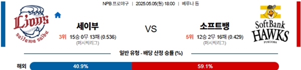 5월 5일 일본야구(NPB) 세이부 VS 소프트뱅크 분석
