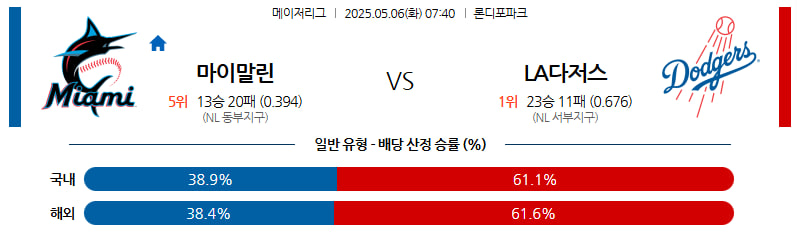 05월 06일 MLB 마이애미 LA다저스 분석