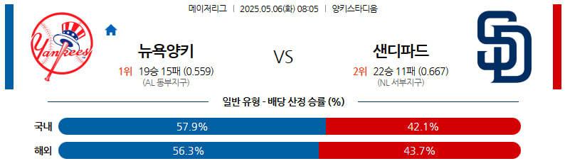 05월 06일 MLB 뉴욕양키스 샌디에이고 분석