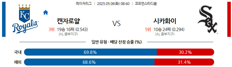 05월 06일 MLB 캔자스시티 시카고W 분석