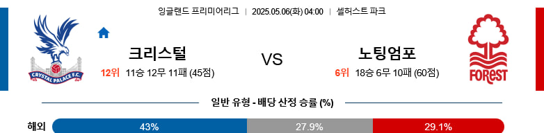 05/06(화) 크리스탈팰리스vs노팅엄포레스트 EPL 분석