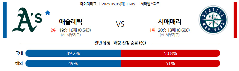 05월 06일 MLB 애슬레틱스 시애틀 분석