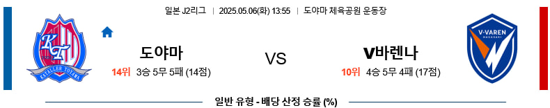 05/06(화) 카탈레도야마vsV-바렌나가사키 J리그2 분석