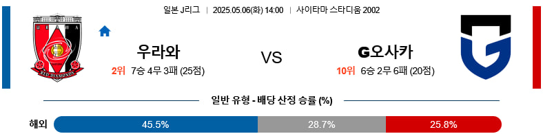 05/06(화) 우라와레드다이아몬즈vs감바오사카 J리그 분석