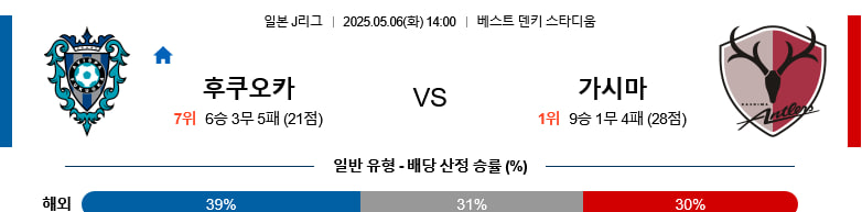 05/06(화) 아비스파후쿠오카vs가시마앤틀러스 J리그 분석