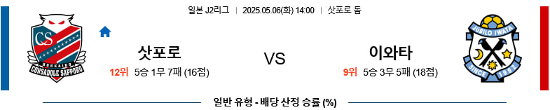 05/06(화) 콘사도레삿포로vs주빌로이와타 J리그2 분석