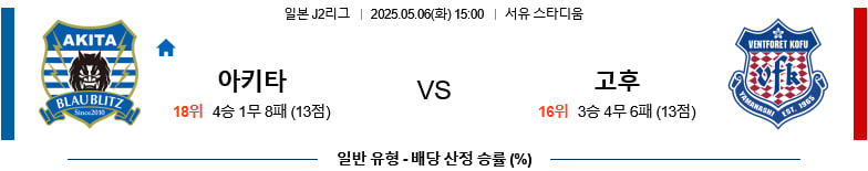 05/06(화) 블라우블리츠아키타vs반포레고후 J리그2 분석