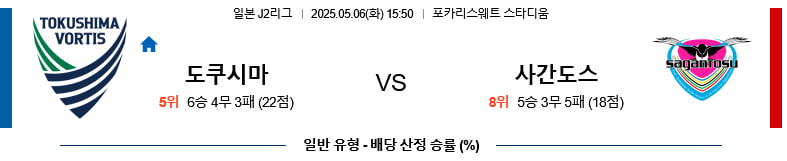 05/06(화) 도쿠시마보르티스vs사간도스 J리그2 분석