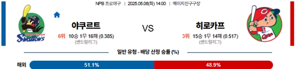 5월 6일 일본야구(NPB) 야쿠르트 VS 히로시마 분석