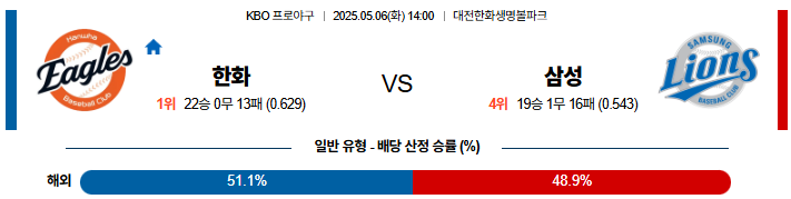 05월 06일 KBO 한화: 삼성 KBO분석