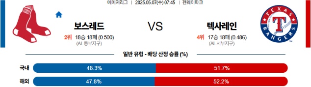05월 07일 MLB 보스턴 텍사스 분석