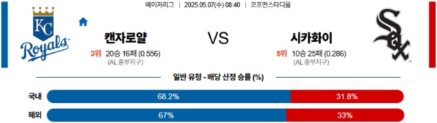 05월 07일 MLB 캔자스 시카고화이트 분석