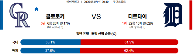 05월 07일 MLB 콜로라도 디트로이드 분석
