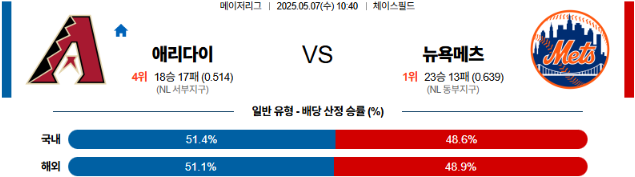 05월 07일 MLB 애리조나 뉴욕메츠 분석