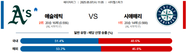 05월 07일 MLB 애슬레틱 시애틀 분석