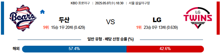 05월 07일 KBO 두산: LG KBO분석