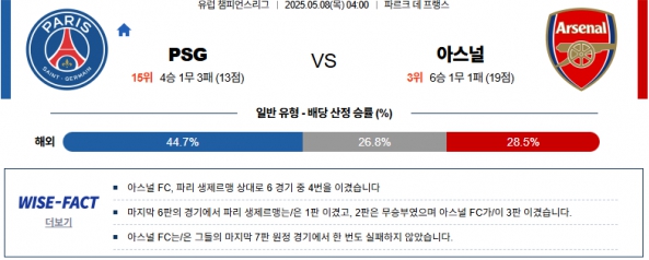 [챔피언스리그] 05월08일 PSG vs 아스날 분석