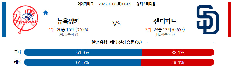 05월 08일 MLB 뉴욕양키스 샌디에이고 분석