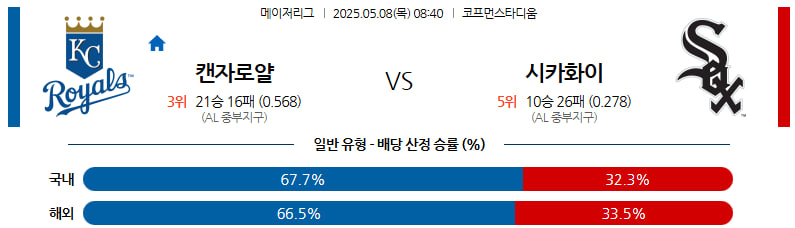 05월 08일 MLB 캔자스시티 시카고W 분석