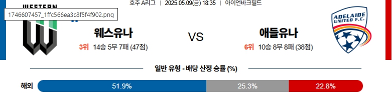 [ 호주 A리그 ] 05월09일 웨스턴유나이티드 vs 애들레이드유나이티드