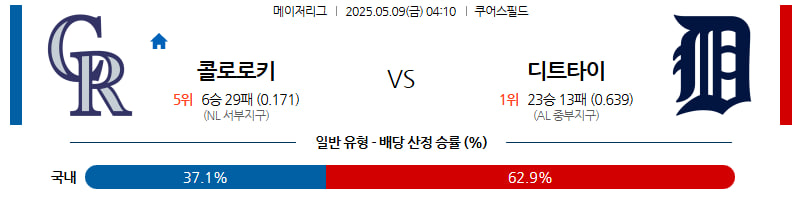 05월 09일 MLB 콜로라도 디트로이트 분석