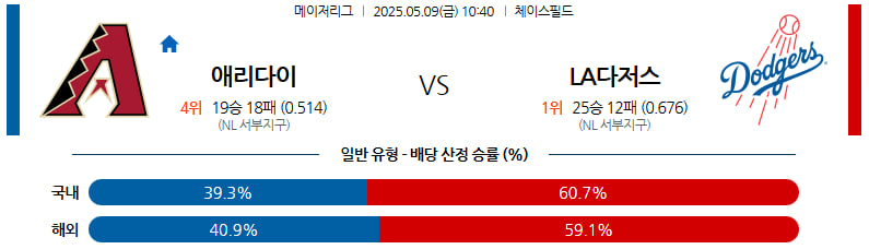 05월 09일 MLB 애리조나 LA다저스 분석
