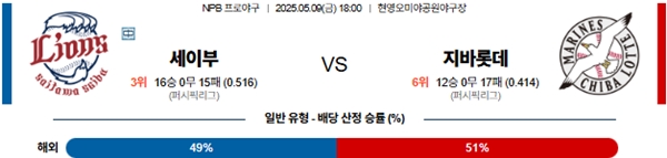 5월 9일 일본야구(NPB) 세이부 VS 지바롯데 분석