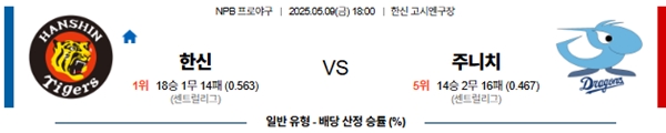 5월 9일 일본야구(NPB) 한신 VS 주니치 분석