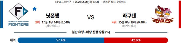 5월 9일 일본야구(NPB) 니혼햄 VS 라쿠텐 분석