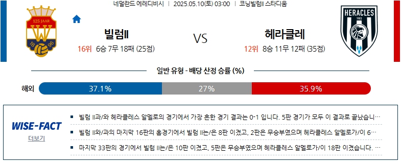 05월 10일 에레디비지에 빌럼 II 틸뷔르흐 헤라클레스 알멜로 분석