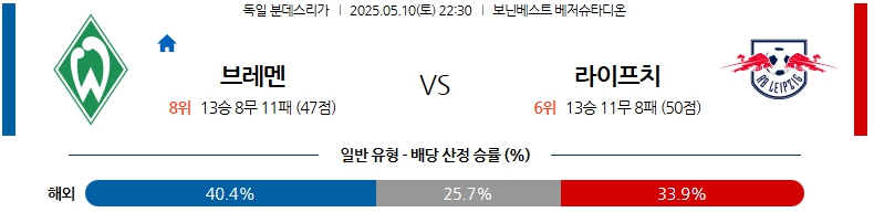 05월 10일 분데스리가 SV 베르더 브레멘 RB 라이프치히 분석