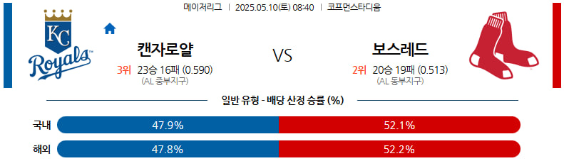 05월 10일 MLB 캔자스시티 보스턴 분석