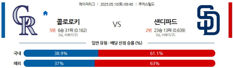 05월 10일 MLB 콜로라도 샌디에이고 분석