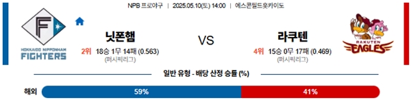 5월 10일 일본야구(NPB) 니혼햄 VS 라쿠텐 분석