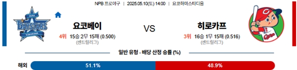5월 10일 일본야구(NPB) 요코하마 VS 히로시마 분석