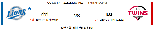 두 투수 모두 야간 경기보다 낮 경기에 아쉬움이 있는 편. 그리고 더블헤더이기 때문에 불펜 운용이 쉽지 않다는 변수가 있다. 낮 경기가 되어버렸다면 의외로 선발 대결은 팽팽하게 갈수 있는 편. 그러나 현재 LG는 오스틴이 없고 이 차이는 크다. 힘에서 앞선 삼성이 승리를 가져갈 것이다.