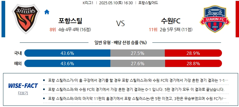 【K리그1】05월10일 포항 스틸러스 vs 수원FC 분석
