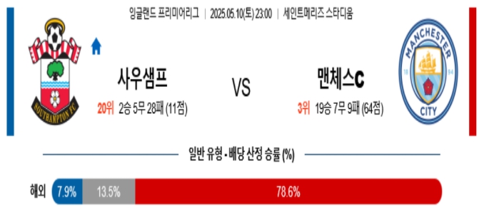 【잉글랜드 프리미어리그】05월10일 사우스햄턴 vs 맨체스터시티 분석